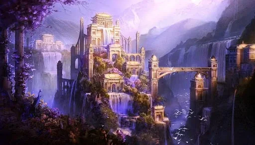 Ia awalnya memasuki perkampungan dengan melewati sebuah jembatan. Di ujung jembatan dirinya melihat pintu gerbang yang menghubungkan kota mewah nan indah.