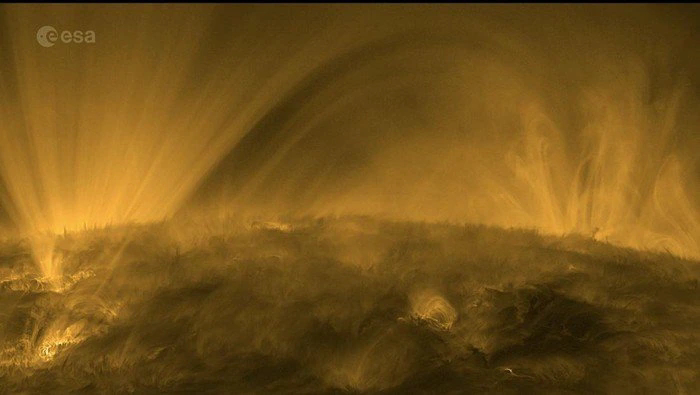 This view was captured by the European Space Agency's (ESA) Solar Orbiter vehicle on September 23, 2023. Using the Extreme Ultraviolet Imager (EUI) instrument, the Solar Orbiter vehicle recorded activity in the corona or uppermost layer of the Sun's atmosphere. In the 30 second video shared by ESA, you can see some amazing astronomical phenomena. The first is 'coronal moss', a brightly glowing gas that creates lace-like patterns in the Sun's atmosphere.