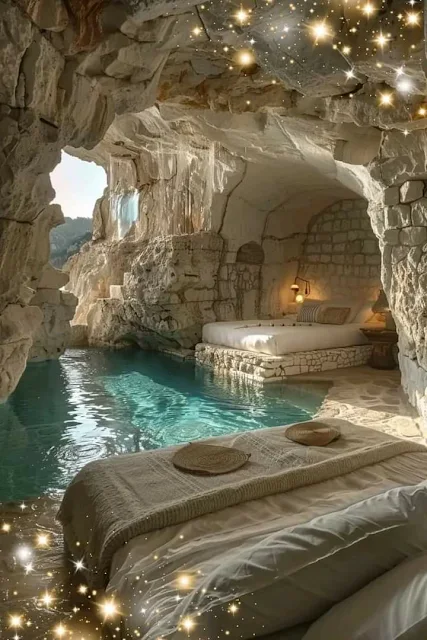 For example, the bedroom of Faye Nayler, a woman who picked up and shoveled out her own house in 1960. Faye Nayler and two friends managed to build a bar, a swimming pool in the living room, and a full dining kitchen.