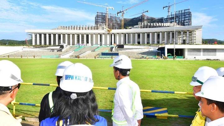 President Joko Widodo reviewed that construction at the State Palace at IKN was already 80% complete, both interior and exterior construction. Jokowi expressed this when inspecting the location of the ceremony field near the State Palace, Nusantara, East Kalimantan, Tuesday (5/6/2024). (Doc. Presidential Secretariat/Rusman)